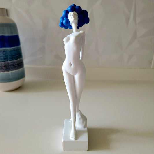 Woman Figurine Sculpture Blue Hair 30 cm