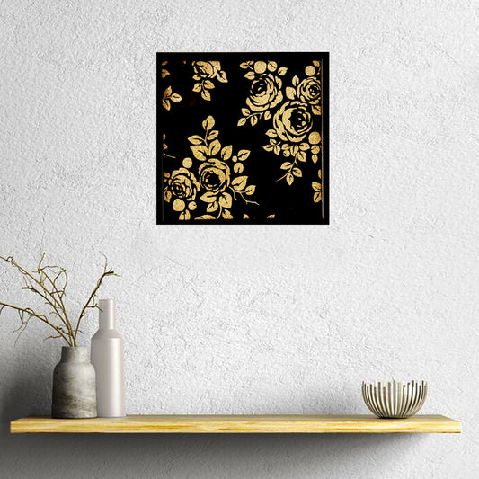 Wall Framed Art Glitter Finish Gold Floral, 18x18 cm