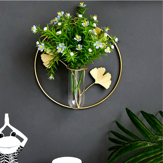 Wall Gold Metal Floral with Vase Glass Cup