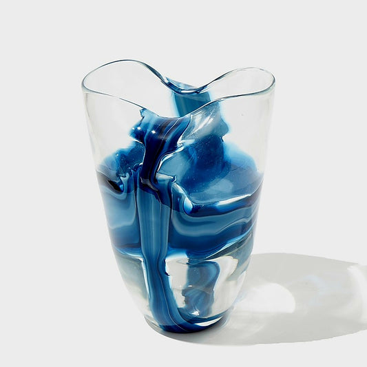 Clear & Blue Glass Vase 23 cm